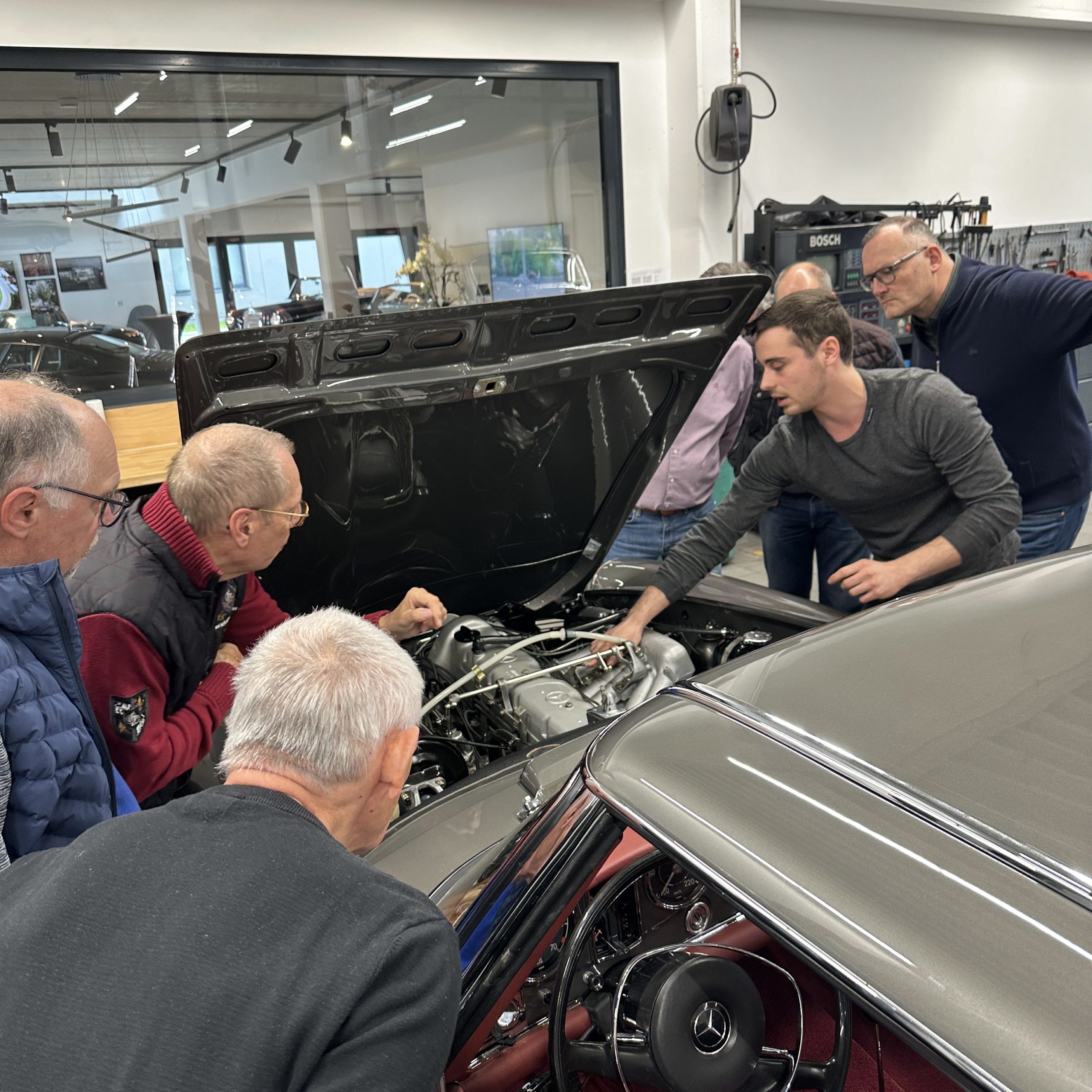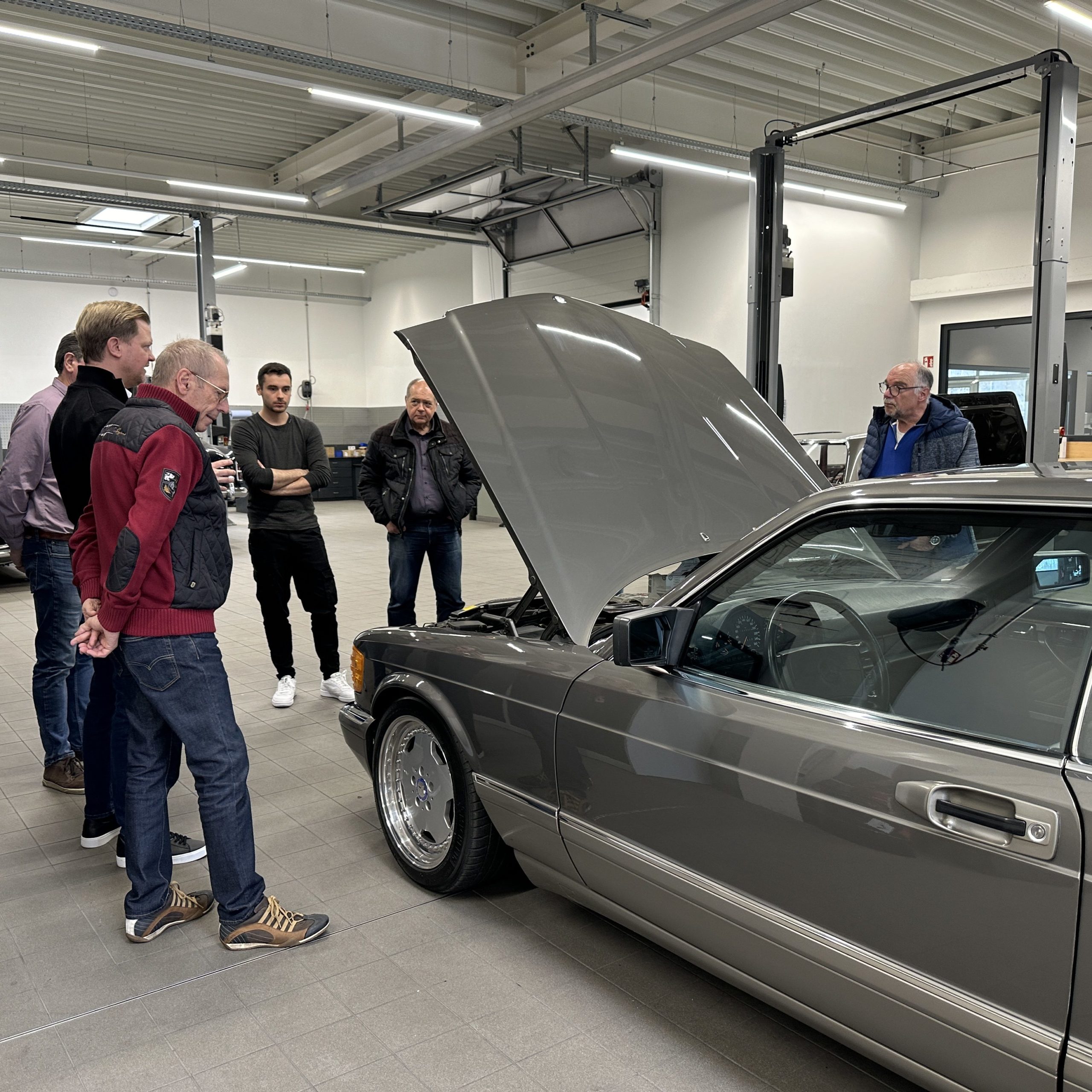 Verschiedene Handgriffe und Tipps rund um die Technik verschiedener Mercedes-Benz Klassiker - das war der Fokus unseres ersten "Oldtimer Technik"-Workshops am 16.03.2024 im WALLNERWERK in Anzing.